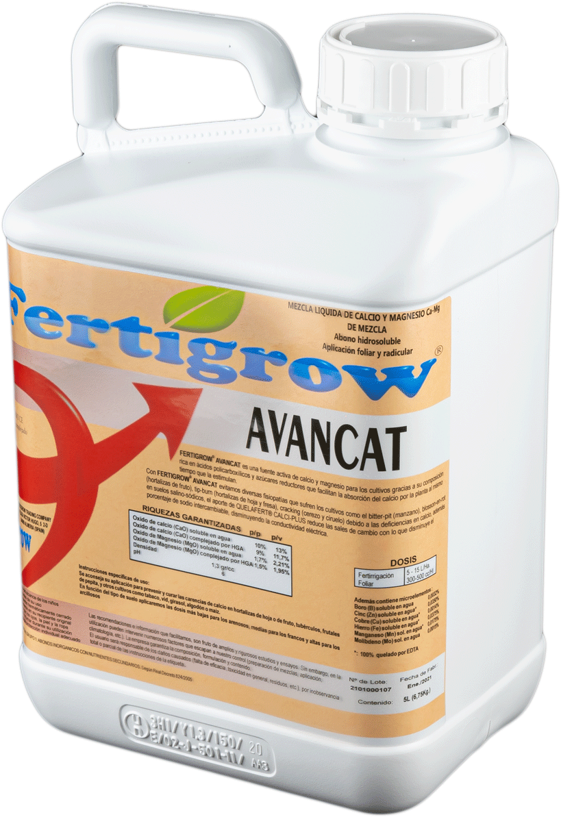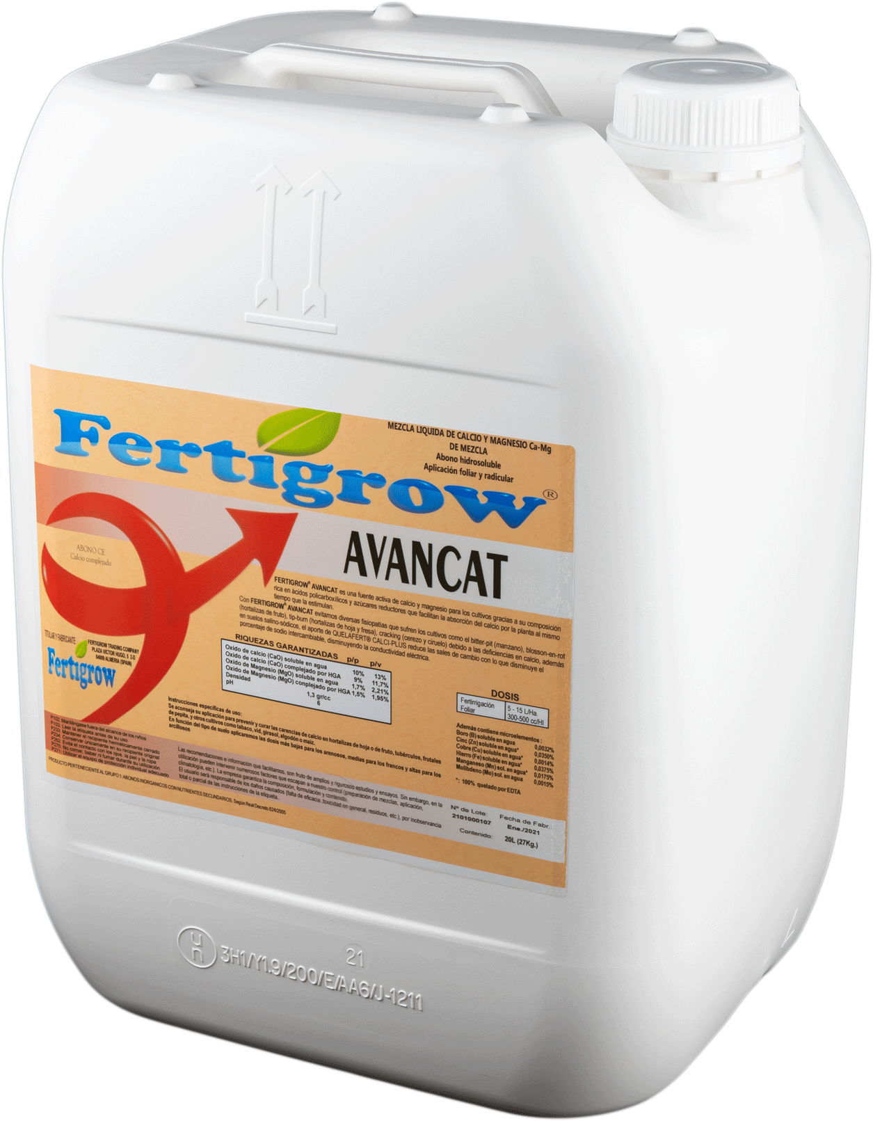 AVANCAT is a natural source of calcium and magnesium thanks to its composition rich in polycarboxylic acids and enzymes that facilitate the absorption of calcium by the plant while stimulating it. It is also complemented with a series of chelated microelements that reduces the possibility of pathophysiologies in the plant due to the lack of any microelement.